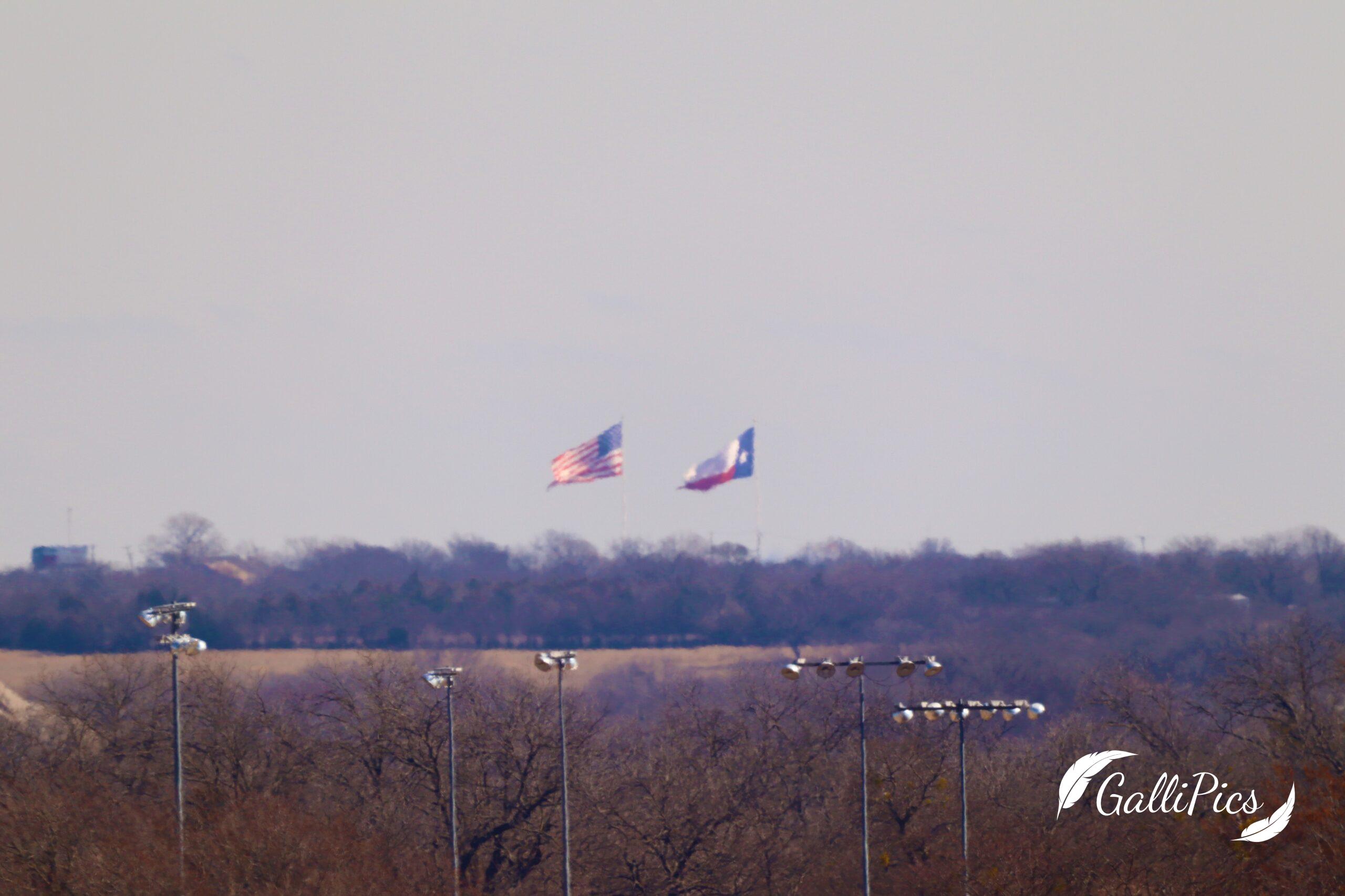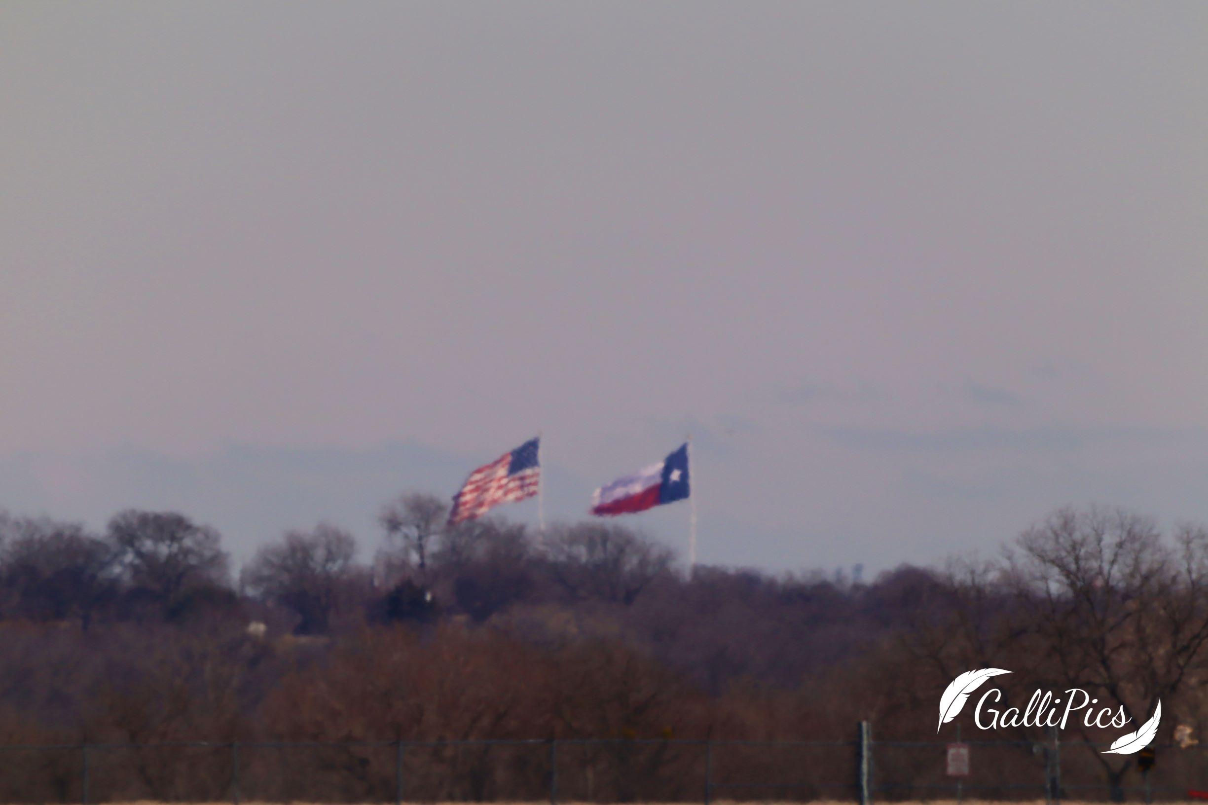 So the local pawn shop in Princeton recently installed these GIANT flag poles with these ENORMOUS flags. They are definitely impressive! Evidently the ball at the top of the flagpole is two feet in diameter. The rumor that you could see them even from McKinney had me skeptical until we were driving home on a clear day.